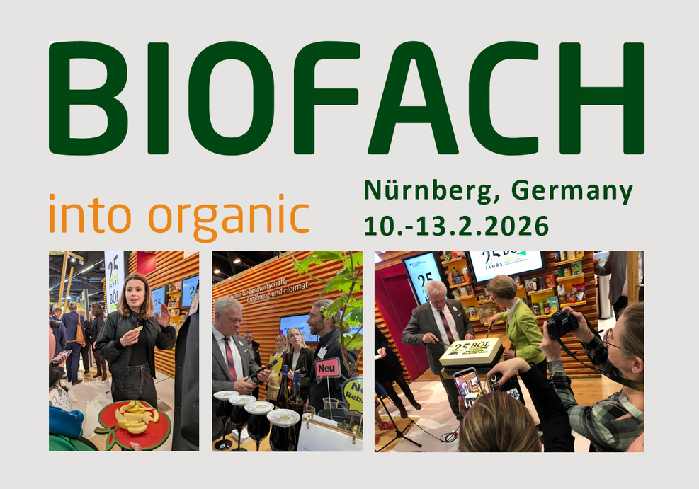 Mit Kostproben von „Piwis und Schowis“ war das das Julius Kühn-Institut (JKI) vom 10. bis zum 13. Februar 2026 auf der Biofach, der Weltleitmesse für Bio-Lebensmittel in Nürnberg, vertreten. Auf dem Stand des Bundesministeriums für Landwirtschaft, Ernährung und Heimat (BMLEH) in Halle 9-355 präsentieren die beiden JKI-Fachinstitute für Züchtungsforschung an Obst und für Rebenzüchtung aktuelle Forschungsergebnisse in Form neuer pilzwiderstandsfähiger Rebsorten aus der Calardis-Reihe mit Blanc, Musque, Soleil und der roten Royal und der Schorfwiderstandsfähigen Apfelsorte Pia41, die sich durch ein gute Lagerfähigkeit auszeichnet. Die ess- und trinkbaren Ergebnisse aus den langjährigen Zuchtprogrammen sind auch für den Ökoanbau hochrelevant, sparen sie doch den vielfachen Einsatz von fungiziden Kupfer-Schwefelverbindungen. Die Einsparungsraten für die Pflanzenschutzmittel betragen zwischen 50 bis 80 Prozent.
