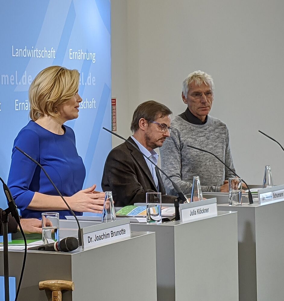 Die Bundesministerin für Ernährung und Landwirtschaft, Julia Klöckner, hat heute (19.12.2019) in Berlin auf einem Pressetermin die Ackerbaustrategie ihres Hauses vorgestellt. An der Erarbeitung der Grundlagen des Strategiepapiers war das Julius Kühn-Institut (JKI) maßgeblich beteiligt. Zwölf Experten des JKI, darunter der Präsident, Prof. Dr. Frank Ordon, und Leiterinnen bzw. Leiter einzelner JKI-Fachinstitute, lieferten wissenschaftlichen Input. Das JKI koordinierte darüber hinaus die Mitwirkung weiterer Forschungseinrichtungen und Behörden und war federführend bei der Erarbeitung des Berichtes über die Handlungsempfehlungen für die Strategieentwicklung.