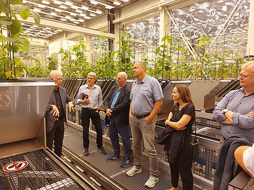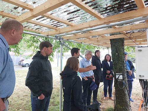 Unterabteilungsleiter Schäfer wurde von drei Vertreterinnen und Vertretern der Fachreferate seiner Abteilung begleitet. So nahmen Dr. Thomas Meier, Leiter des BMLEH-Referats „Biodiversität und Naturschutz, Agrarumweltmaßnahmen“, Nina Lüddecke vom Referat „Klimaschutz, Klimaanpassung, Wasser“ (521) und Dr. Tilman Schachtsiek vom zuständigen Referat für „Energie, Bioökonomie, Nachwachsende Rohstoffe“ an dem Informationsaustausch teil.