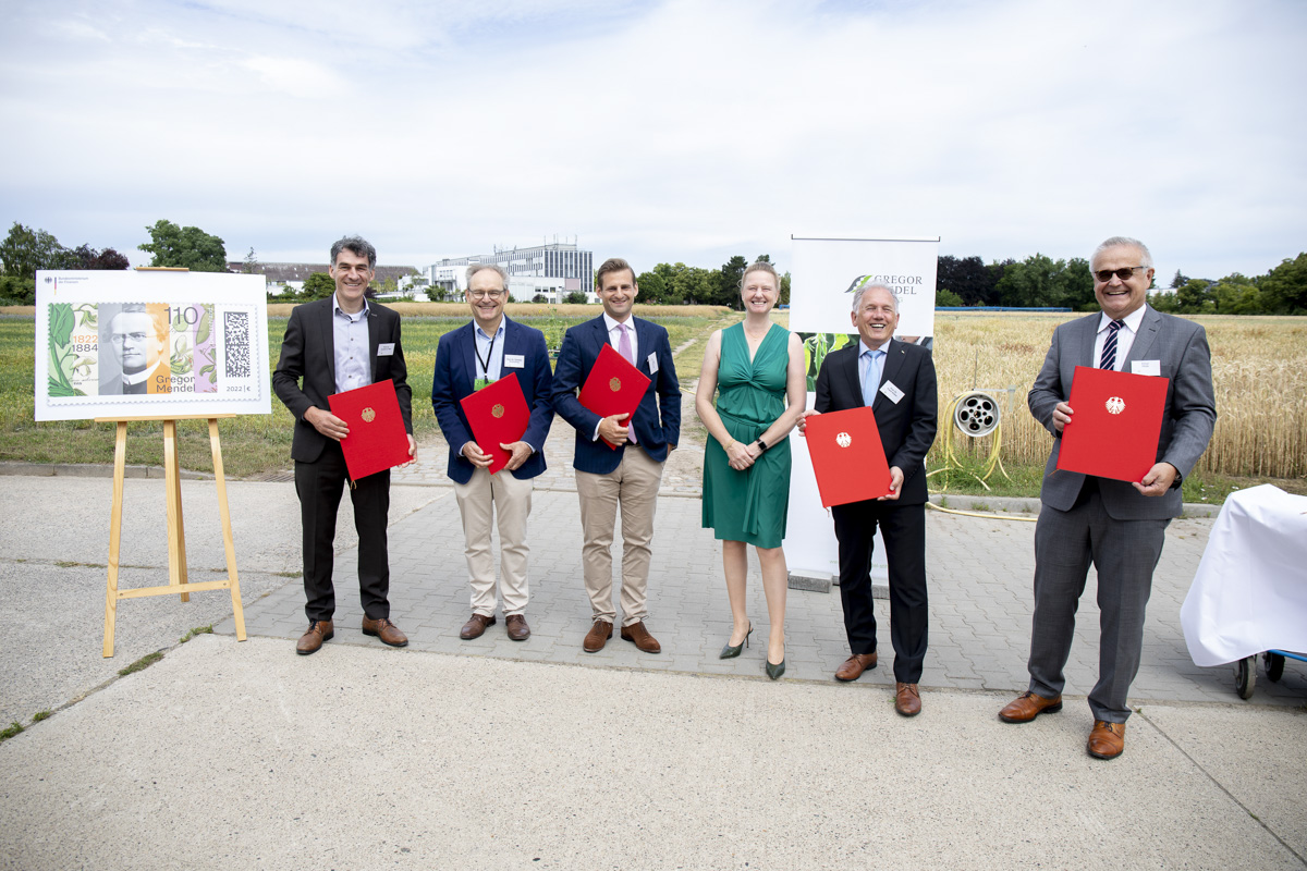 (Berlin) Anlässlich des runden Geburtstags von Gregor Mendel, der sich am 20. Juli zum 200. Mal jährt, gibt das Bundesfinanzministerium (BMF) in Berlin ein neues Sonderpostwertzeichen heraus. Die erste offizielle Präsentation erfolgte am 29.06.2022 im feierlichen Rahmen auf Einladung der Gregor Mendel Stiftung auf dem Versuchsfeld des Julius Kühn-Instituts (JKI) am Standort Berlin-Dahlem. Die Stiftung, auf deren Initiative die Erstellung der Sonderbriefmarke zurückgeht, möchte so an das Vermächtnis des Entdeckers der nach ihm benannten Vererbungsregeln für die Pflanzenwissenschaften und insbesondere auch für die Pflanzenzüchtung erinnern.