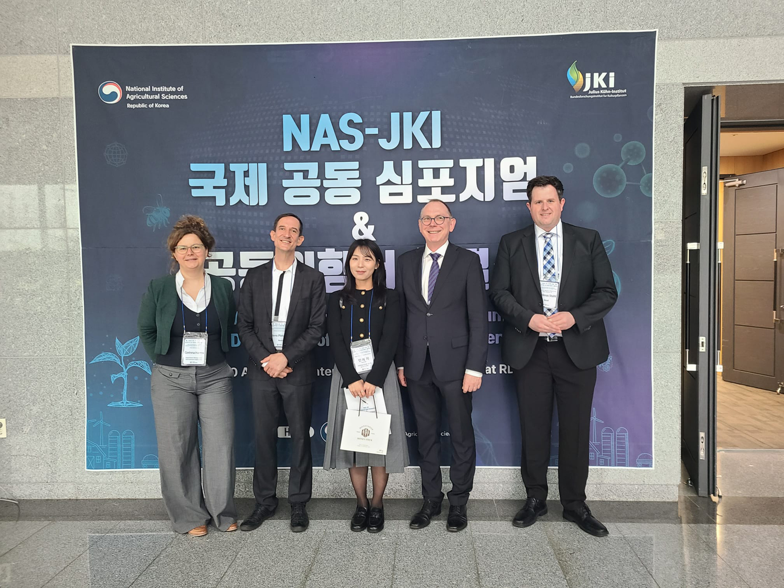 Die Landwirtschaft steht heute weltweit vor großen Herausforderungen. Der Klimawandel, der Verlust der biologischen Vielfalt sowie die Sicherung der Ernährung einer wachsenden Weltbevölkerung machen es dringend notwendig, die Anbausysteme anzupassen und Ernährungssysteme nachhaltig zu gestalten. Die Bewältigung dieser komplexen Aufgaben erfordert eine verstärkte internationale Zusammenarbeit sowie wissenschaftsbasierte, kooperative Forschungsansätze. Aus diesem Grund intensivieren Südkoreas „National Institute of Agricultural Sciences“, kurz NAS und das Julius Kühn-Institut (JKI) als Bundesforschungsinstitut für Kulturpflanzen ihre Zusammenarbeit. Nachdem im Mai 2025 eine Delegation des NAS die JKI-Standorte Dossenheim und Braunschweig besucht hatte, luden das Nationalinstitut NAS und dessen National Institute of Crop Sciences (NICS) nun zum Gegenbesuch und zu einem gemeinsamen Symposium nach Jeonju ein. Dieses International Joint Symposium bot auch den feierlichen Rahmen, um die gemeinsame Kooperationsvereinbarung (Joint Declaration of Intent) zu unterzeichnen.