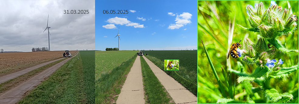 Forschende des JKI, Institut für Bienenschutz, erheben aktuell das zweite Jahr in Folge in Niedersachen und Sachsen-Anhalt Daten über das Vorkommen von Honig- und Wildbienen in Agrarlandschaften. Dazu werden die lokalen Bienengemeinschaften von April bis August monatlich mittels Farbschalenmethode beprobt (Abb. 1). Durch systematische, über mehrere Jahre erfolgende Datenerhebung wird eine robuste Referenz für ein zukünftiges, intervallisch durchgeführtes Monitoring erstellt.