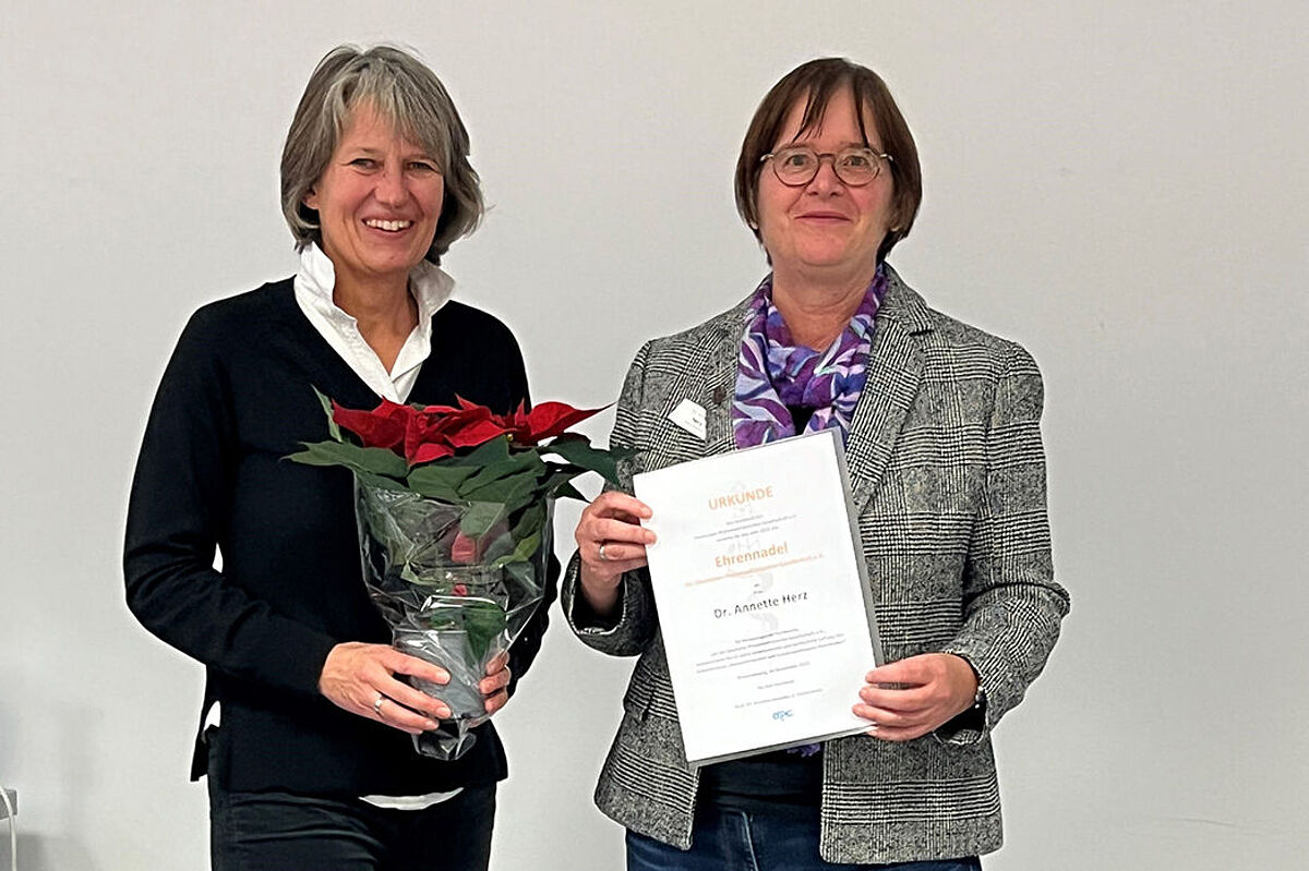 Die Ehrung wurde von Frau Prof. Dr. Annette Reineke, der 1. Vorsitzenden der DPG, überreicht. Dr. Herz erhielt die Auszeichnung in Anerkennung ihres langjährigen Engagements in der Phytomedizin, insbesondere für ihre Tätigkeit als ehemalige Leiterin des genannten Arbeitskreises sowie für ihre bedeutenden Beiträge zur Forschung an Nützlingen.