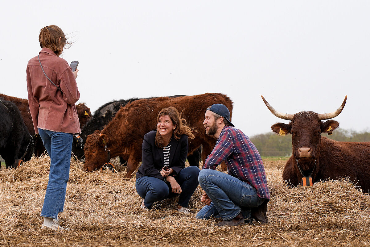 Im Anschluss an die Impulsvorträge folgte der Einblick in die Praxis. Auf dem Betrieb von „Gut & Bösel“ im brandenburgischen Alt Madlitz nahm die Parlamentarische Staatssekretärin des Bundesministeriums für Ernährung und Landwirtschaft (BMEL), Dr. Ophelia Nick, an einen Hofrundgang teil und betonte: „Gesunde Böden und Ökosysteme sind die Grundlage unserer Versorgung mit guten Nahrungsmitteln. Die Klimakrise und ihre Folgen wie Hitze, Starkregen und Dürren machen eine bodenschonende Bewirtschaftung immer wichtiger, denn nur ein gesunder und fruchtbarer Boden speichert Wasser, Nährstoffe und Kohlenstoff. Wir unterstützen die Landwirtinnen und Landwirte deshalb mit Forschung und Förderung dabei, bodenschonend zu wirtschaften."