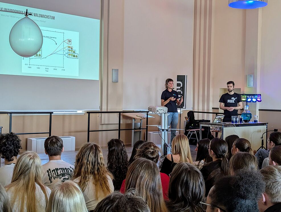 In einem 60-minütigen Vortrag erfuhren die SchülerInnen, was die Wissenschaft aktuell über den Klimawandel weiß und vor welchen Herausforderungen der Wald steht. Spielerische Experimente und anschauliche Beispiele machten die komplexen Zusammenhänge greifbar – ein spannender Einblick in die Wissenschaft des Waldschutzes.