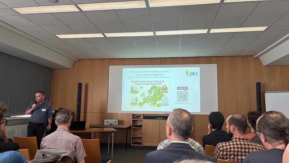 Waldschützer aus ganz Europa haben an diesem Kolloquium teilgenommen und die aktuelle Situation in ihren Ländern vorgestellt. Wir vom JKI Institut für Waldschutz haben unsere Ideen für ein europäisches Netzwerk für Waldschutz und Waldschäden vorgestellt. Viele Länder in Europa haben eigene Systeme, um Waldschutzdaten zu sammeln, aber oft fehlt der gesamteuropäische Blick. Insekten und Krankheiten im Wald machen nicht an Landesgrenzen halt, deshalb sollten wir das Wissen in Europa zusammenführen, um die Dynamik im Wald besser zu verstehen und frühzeitig reagieren zu können.