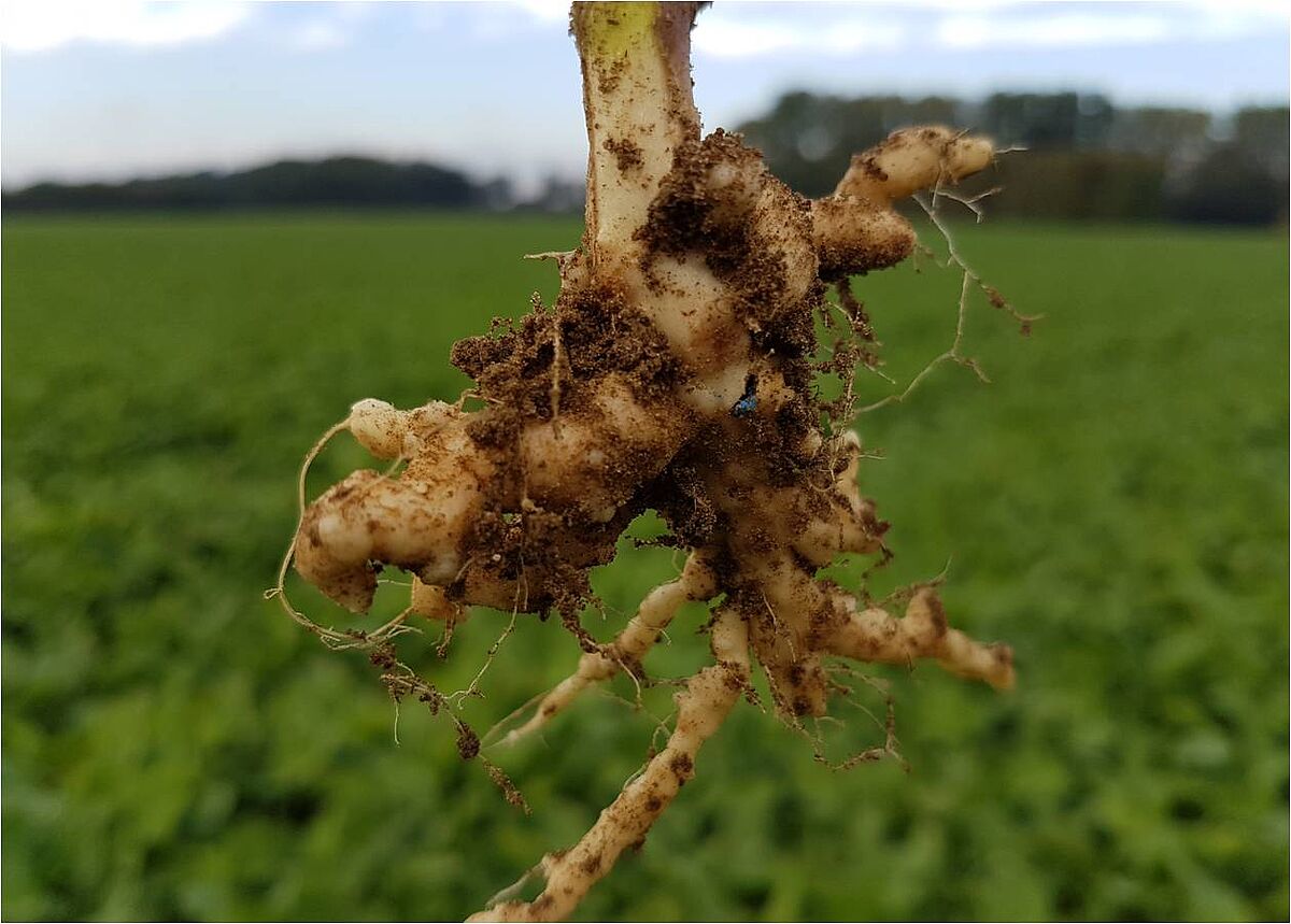 Studies under controlled conditions showed that the first symptoms of clubroot could be visible as early as 7 days past inoculation. Early termination of infected plants at 7dpi resulted in a significant reduction in the development of clubroot symptoms, root fresh weight and the number of resting spores per root mass. As the concentration of resting spores inside the soil is an essential factor in the subsequent development of a clubroot epidemic, the timing of postharvest management is an important determinant of the incidence and severity of clubroot disease in volunteers as well as resting spore propagation.