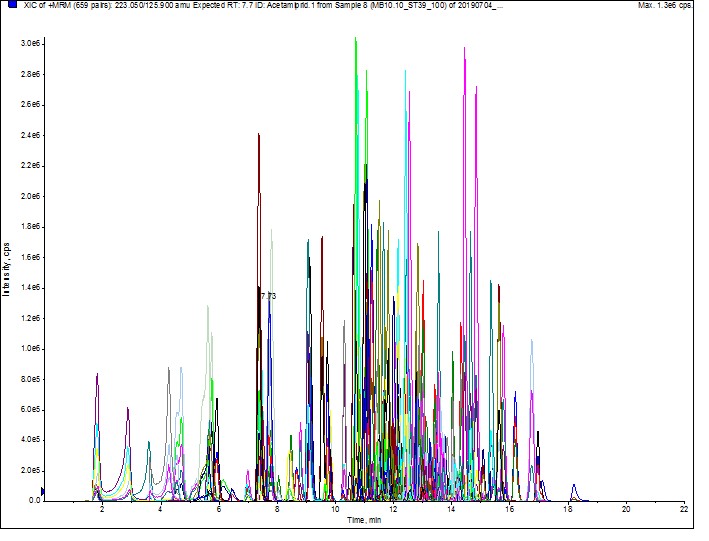 The LC-MS/MS measuring system is used to identify and quantify the residues of pesticides and other relevant xenobiotics in various matrices [e.g. bees, plants, pollen, nectar, wax].
