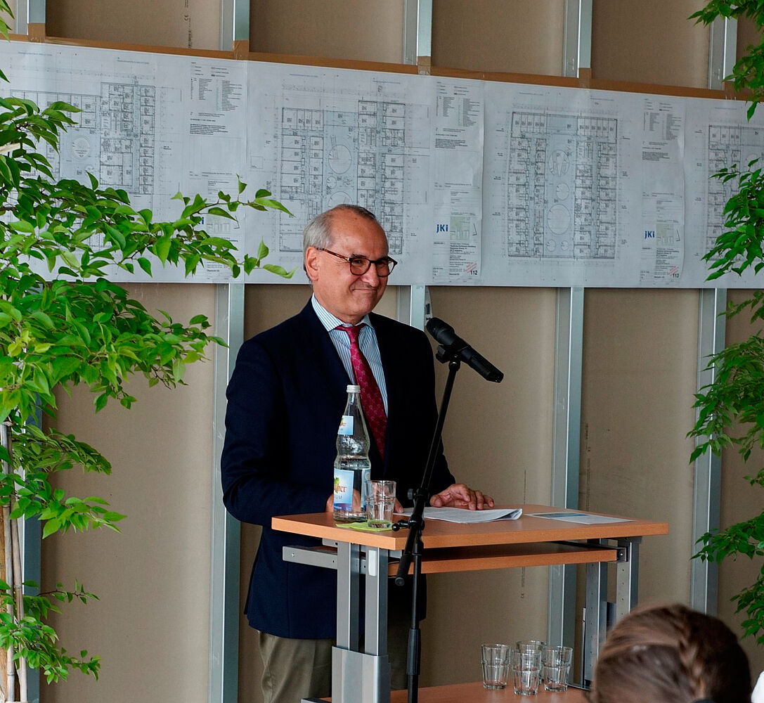 Günther Danziger nutzte im Rahmen der Veranstaltung die Gelegenheit, sich im Namen der BImA bei den Beteiligten für die geleistete Arbeit zu bedanken: „Beim Julius Kühn-Institut für seine geduldige und konstruktive Arbeit in allen Projektphasen, der Bauverwaltung für die erfahrene und kompetente baufachliche Betreuung, den Fachingenieuren und Fachplanern für die hohe ästhetische, technische und funktionale Qualität. Und natürlich bei allen Handwerkern, ohne die aus Planungen keine Realität werden könnte.“