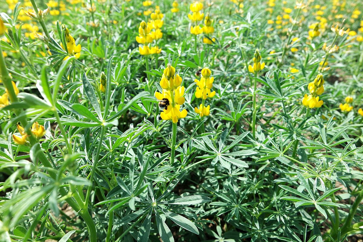 Denn abgesehen von ihrer Anfälligkeit für Anthraknose verfügt die Gelbe Lupine über bemerkenswerte Eigenschaften. Sie hat einen höheren Proteingehalt als die Blaue und die Weiße Lupine, die ebenfalls in Deutschland angebaut werden. Als Leguminose bindet sie Luftstickstoff im Boden, was den Düngerbedarf der Folgefrucht verringert. Ihre Blüten bieten Hummeln Nektar und Pollen. Ein weiteres Plus: Sie wächst auf mageren, sandigen Böden und zeigt eine hohe Trockentoleranz. „Selbst im Dürresommer 2018 stand sie auf unseren Versuchsfeldern wie eine Eins“, sagt Ruge-Wehling.