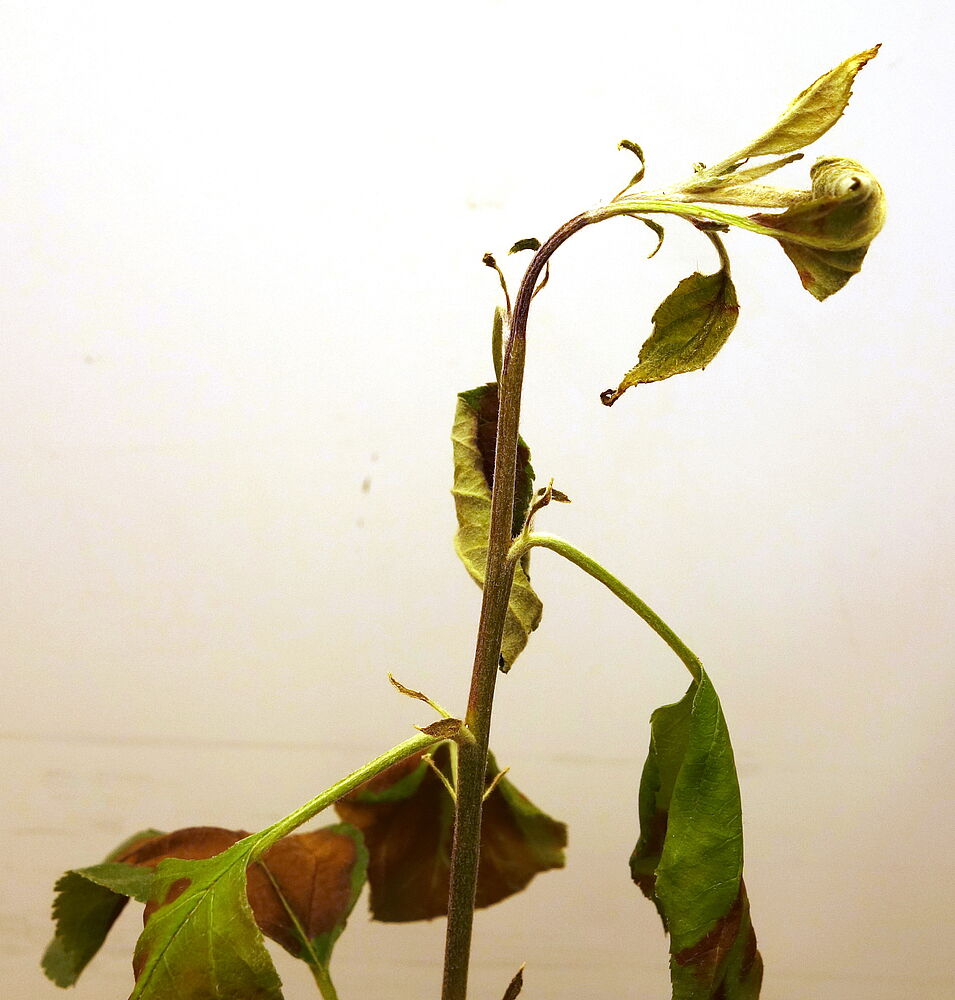 Die Pflanzen einer anfälligen Apfelsorte, in denen das Effektorprotein des Feuerbrandbakteriums aktiviert wurde, bildeten schon nach kurzer Zeittotes Gewebe im Bereich der Triebe und die Blätter wurden braun. Diese Krankheitssymptome treten auch bei einer natürlichen Infektion von anfälligen Apfelsortenauf. „In einem nächsten Schritt haben wir die Antwort der Pflanzen auf das fremde Bakterienprotein studiert“, beschreibt Flachowsky das Vorgehen. Dabei zeigte sich, dass das Effektorprotein eine Kettenreaktion anstößt und zwar die Salicylsäure-abhängige Antwort, die die Ausbildung von totem Gewebe fördert, den so genannten Nekrosen. Das legt die Vermutung nahe, dass der Feuerbranderreger, seinen Wirt, den Apfelbaum so manipuliert, dass dieser ihm „ein Bett“ aus toten Zellen bereitet, von denen er sich dann ernährt.