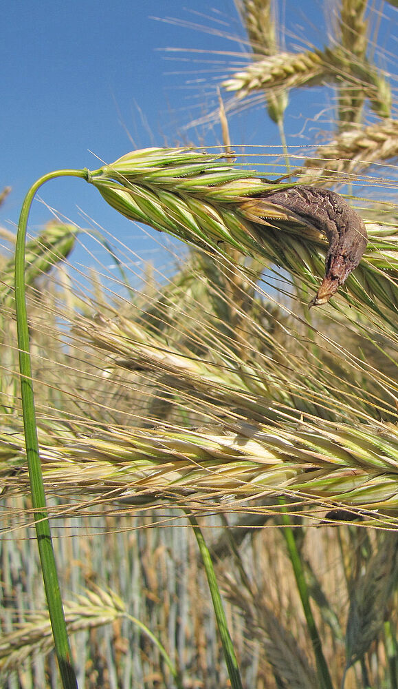 Hier gilt es zunächst, den Roggen von seiner hohen Anfälligkeit gegenüber dem gefährlichen Mutterkornpilz zu befreien. Wertvolle Genvarianten, die zu hohem Pollenausschüttungsvermögen führen, sind bereits gefunden. Weil die Pilzsporen mit den Pollen konkurrieren müssen, verfügen Sorten mit maximalem Pollenschüttungsvermögen über eine optimale Mutterkornabwehr. Nun sucht Hackauf in der