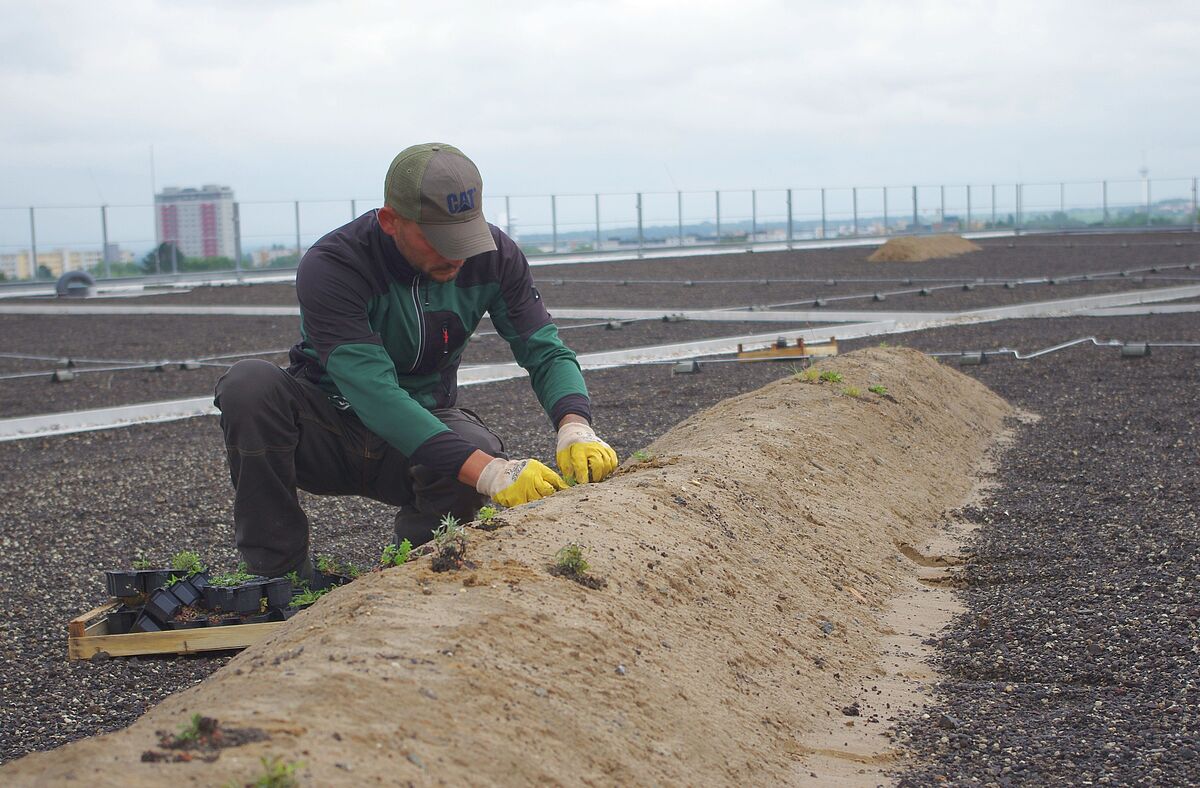 56 Hektar Landschaftsfläche werden laut Statistischem Bundesamt jeden Tag versiegelt. Um diesem anhaltenden Flächenverbrauch etwas entgegenzusetzen, wird in der Städteplanung zunehmend nach Ausgleichsmöglichkeiten für die Versieglung gesucht. „Flachdächer im urbanen Raum besitzen hier großes Potenzial,“ betont Greil, „richtig bepflanzt bieten sie Platz für Grünflächen, möglichen Lebensraum für weitere Lebewesen wie Insekten und somit einen kleinen Ausgleich zur dichter werdenden Bebauung der Siedlungsgebiete.