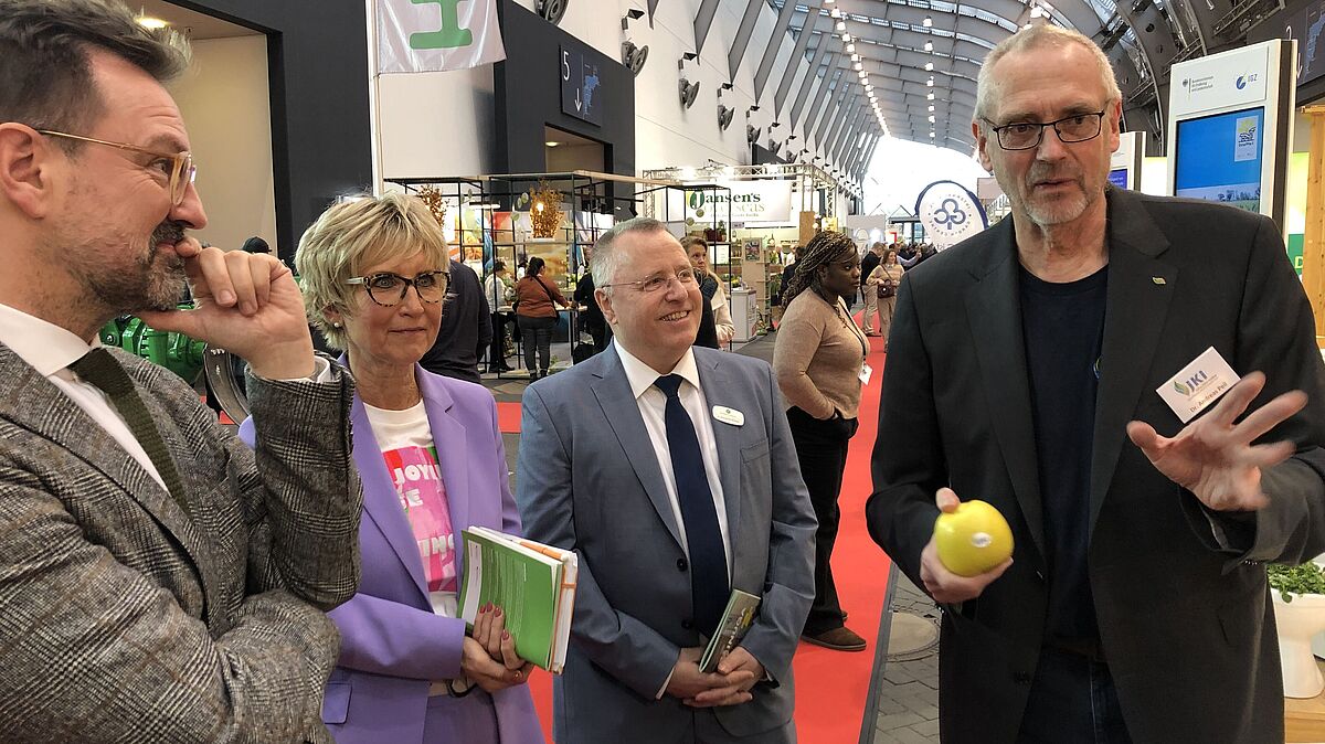 Inhalt: ZVG-Spitze informierte sich am BMEL-Stand auf IPM Essen über JKI-Forschung für mehr Nachhaltigkeit im Obstbau